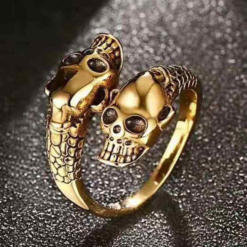 リング 男女兼用 ステンレス スカル ドクロ ワイルド パンク ロック 欧米レトロ ヴィンテージ 開口式 調節可能 指輪 アクセサリー