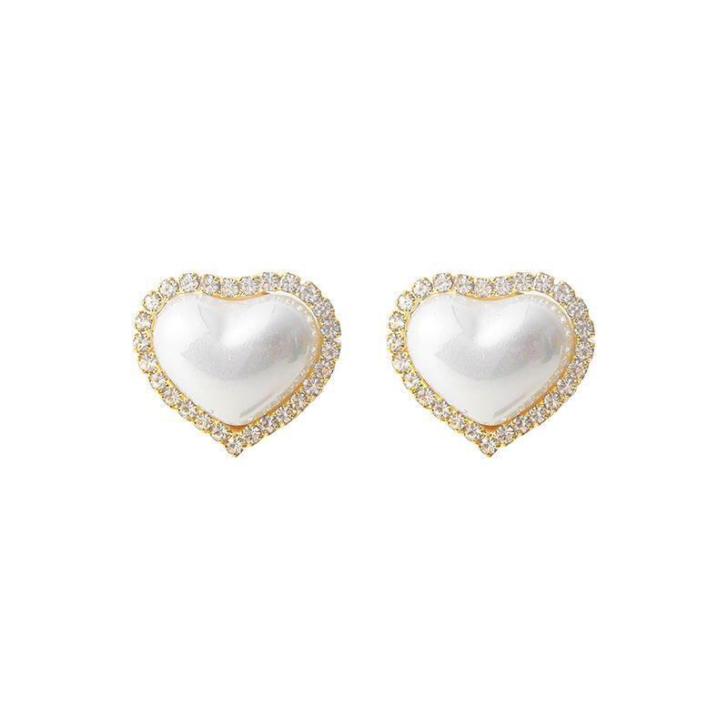 ピアス レディース 925シルバーポスト ハート パール ゴールドカラー 煌めく ラインストーン 個性的デザイン 上品 エレガント 高級感 韓国スタイル 普段使い