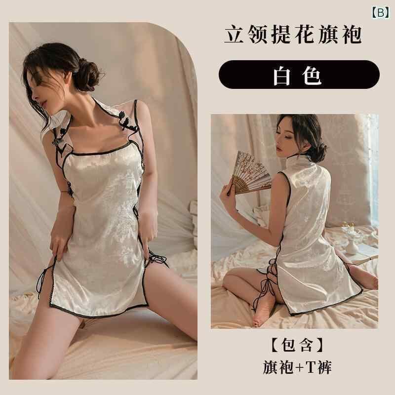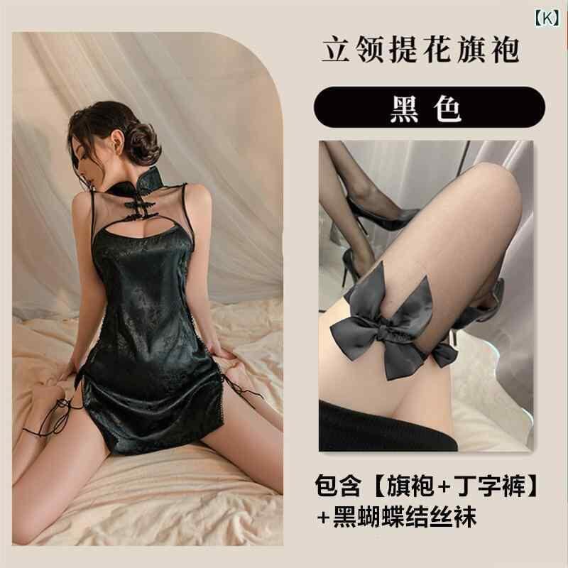 ランジェリー レディース セクシー チャイナドレス 制服風 コスプレ衣装 シースルー スリット入り ナイトウェア ミニ丈 Tバックセット ポリエステル素材 誘惑 ルームウェア イベント