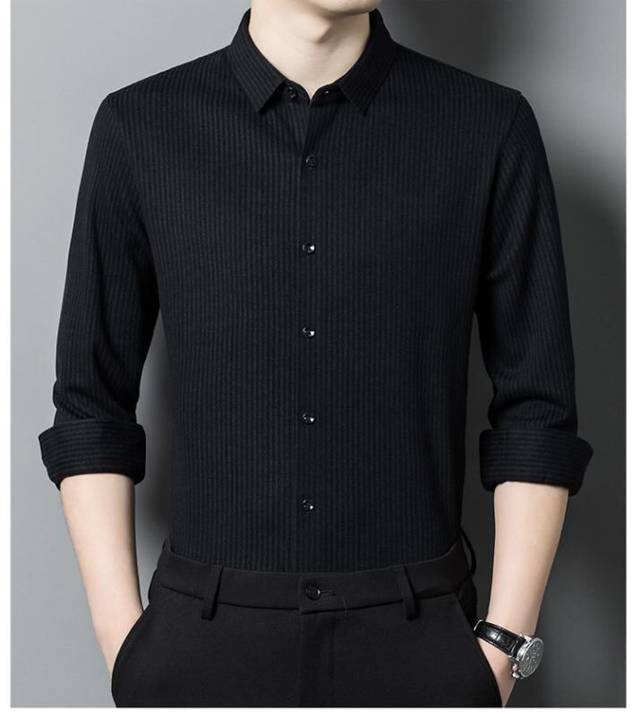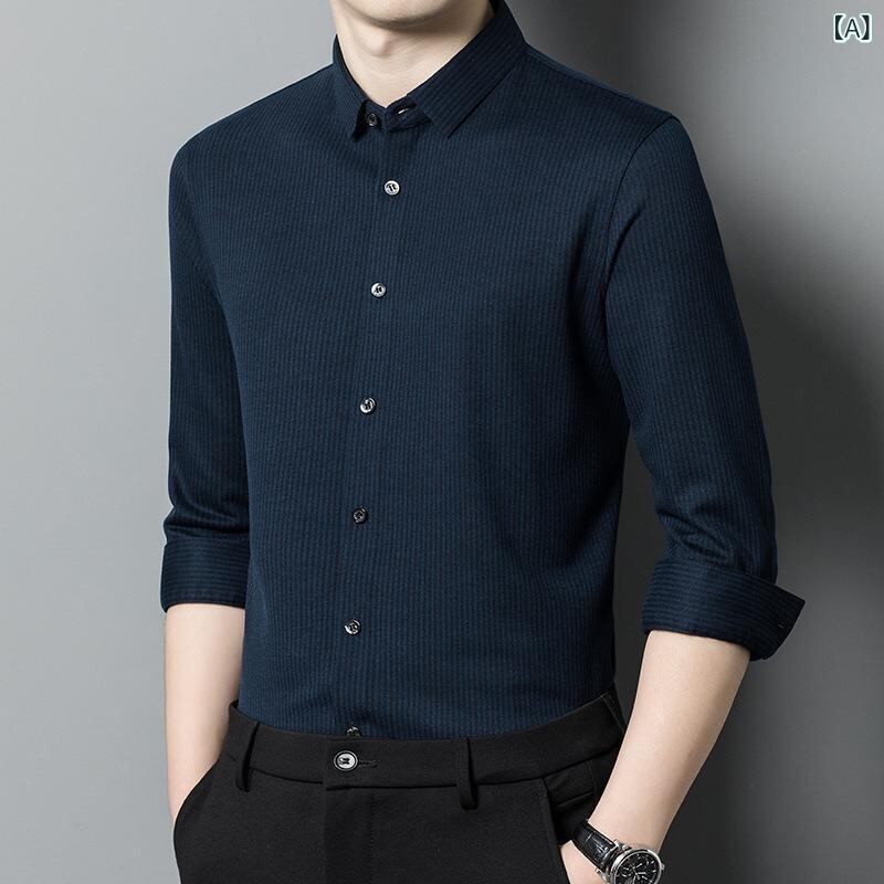 シャツ メンズ 秋 カシミヤ 100% 長袖 ビジネス カジュアル 高級感 ノーアイロン ワイシャツ ストライプ ゆったり 大人カジュアル 吸湿速乾 通気性 通勤 オフィス 普段使い 30代 40代 50代 ダークネイビー ワインレッド ブラック