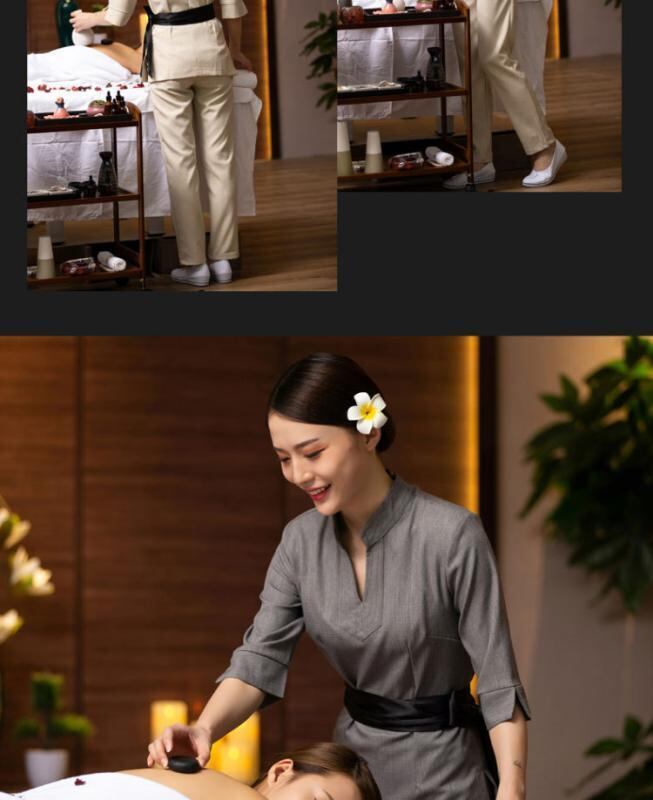 ユニフォーム レディース 美容 エステ 施術 受付 サウナ マッサージ用 スタイルアップ 細見え 長ズボン パンツ セットアップ 吸湿速乾 綿麻素材 七分袖 Vネック ブラウン ベージュ グレー