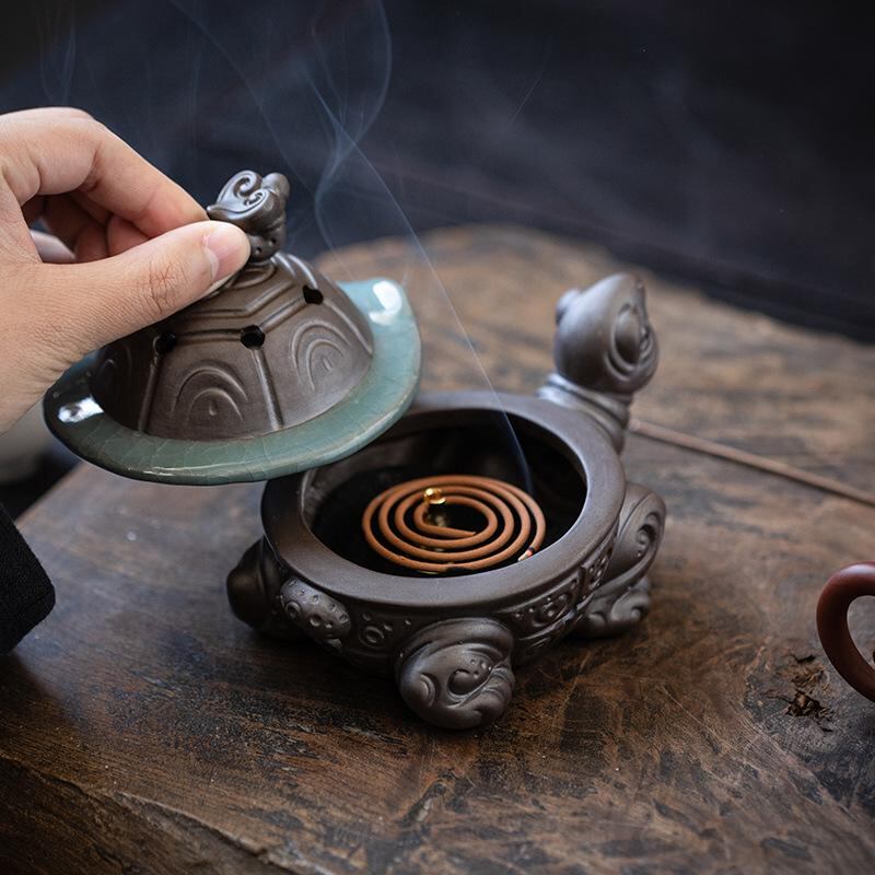 香炉 亀 陶器製 禅意 茶道 書斎 インテリア 長寿 縁起物 和風 室内 卓上 お香立て アロマ リラックス 癒やし 置物