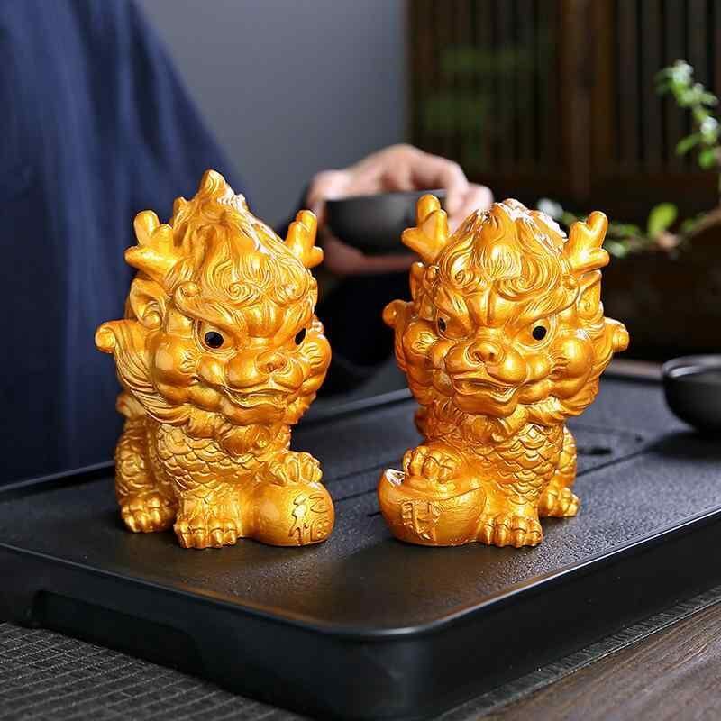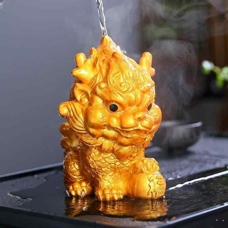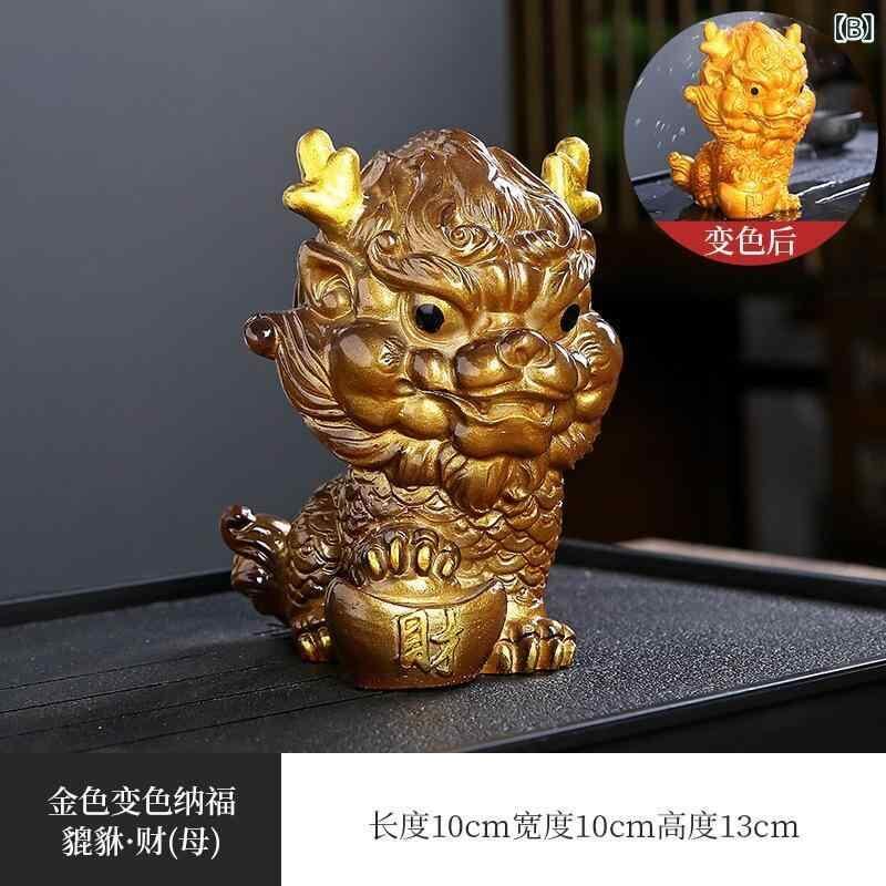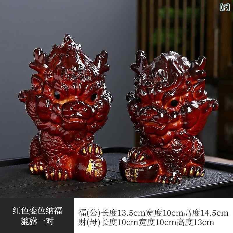 置物 ユニーク 貔貅 ピクシー 茶寵 ちゃちょう ティーペット 変色 色変わり 卓上 茶台 茶盤 風水 装飾品 デコレーション 縁起物 ラッキーアイテム 樹脂製 中国風