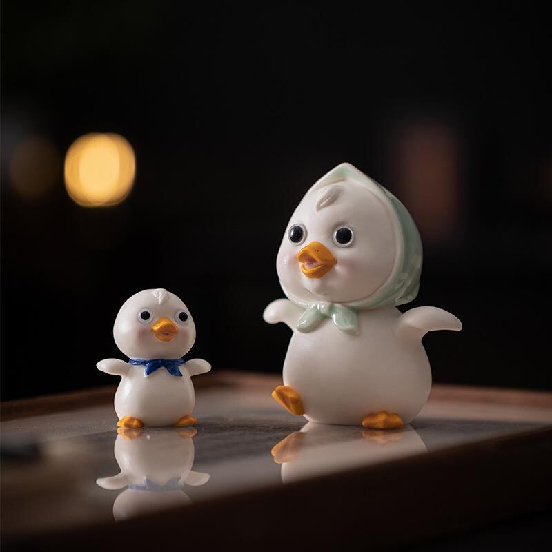 置物 アヒル 動物 陶器 陶磁器製 かわいい カートゥーン ユニーク デスク 卓上 インテリア 庭 ガーデニング 盆栽 ミニチュア 景観 装飾 親子 ひよこ オブジェ オーナメント