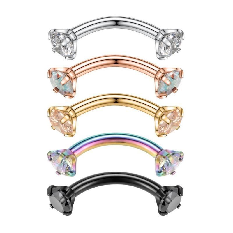 眉ピアス ユニセックス ステンレス製 ボディピアス インターナルスレッド 1.2mmゲージ カーブバー オパール ジルコニア ボール 普段使い 高品質 アレルギー対応