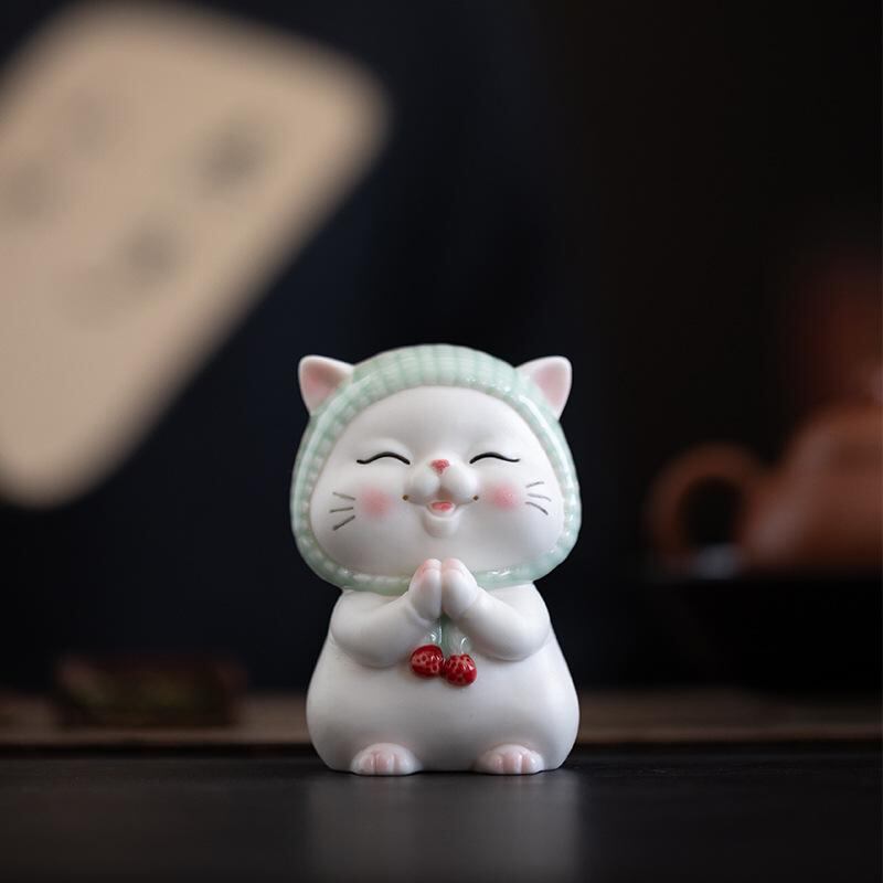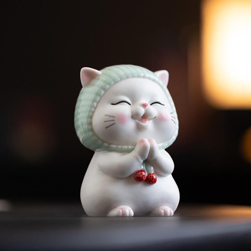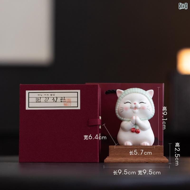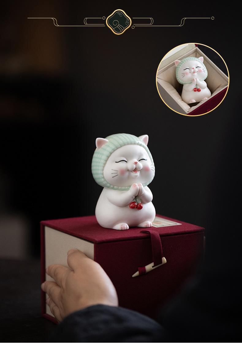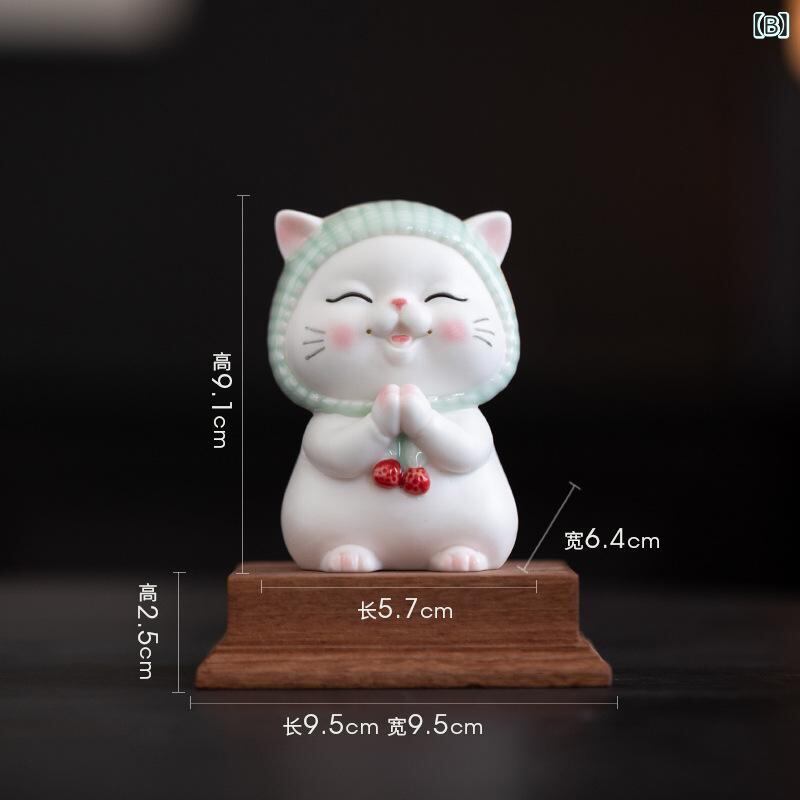 置物 招き猫 かわいい 子猫 手作り 陶器 インテリア 雑貨 開運 縁起物 デスク 玄関 リビング 装飾 オブジェ ギフト プレゼント