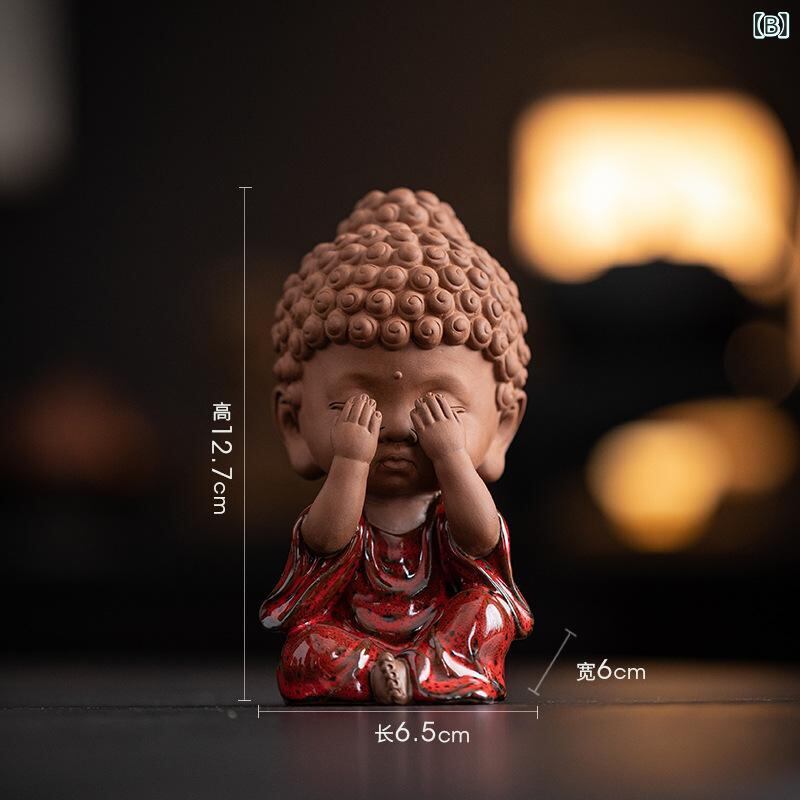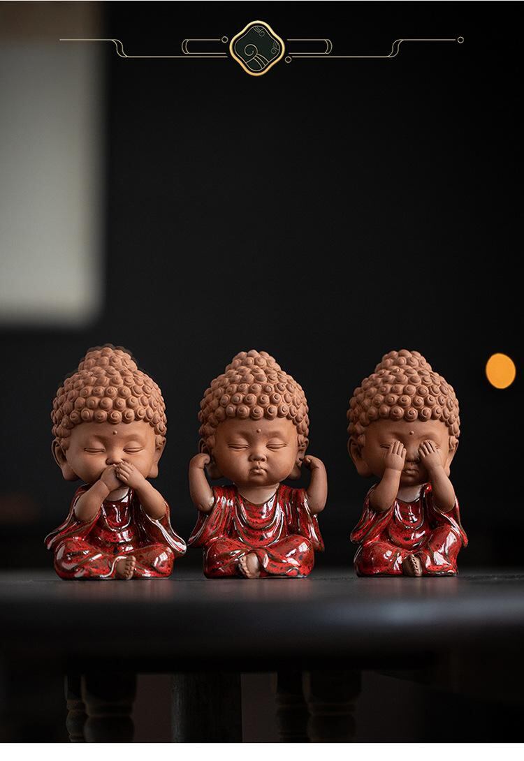 置物 新中式 三猿童子仏 陶磁器 禅意 インテリア 茶室 デスク飾り リビング 書斎 棚 おしゃれ 紫砂 かわいい 癒やし オブジェ ギフト プレゼント