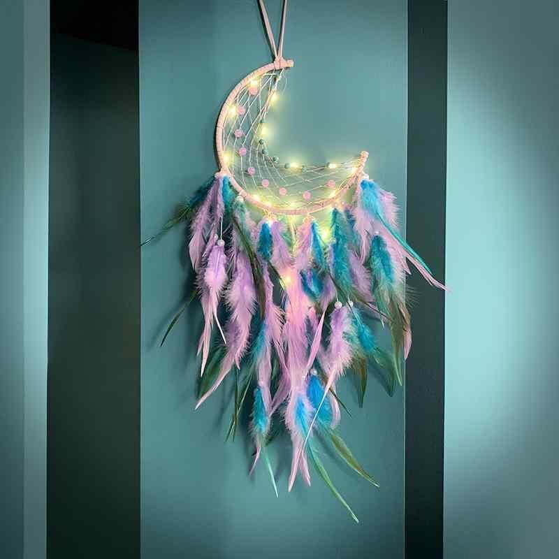 ウォールデコレーション ガーリー ドリームキャッチャー 吊り飾り ナチュラルテイスト インスタ映え おしゃれ デザイン 店舗装飾 インテリア 部屋飾り 誕生日 プレゼント 手作り ハンドメイド 半月型 パープル系