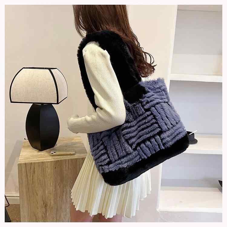 トートバッグ レディース 女性用 大容量 ふわふわ ファー レトロ 異素材ミックス おしゃれ 肩掛けバッグ 普段使い デイリーユース ポリエステル マグネットボタン 横型 スクエア ファスナーポケット ダブルハンドル