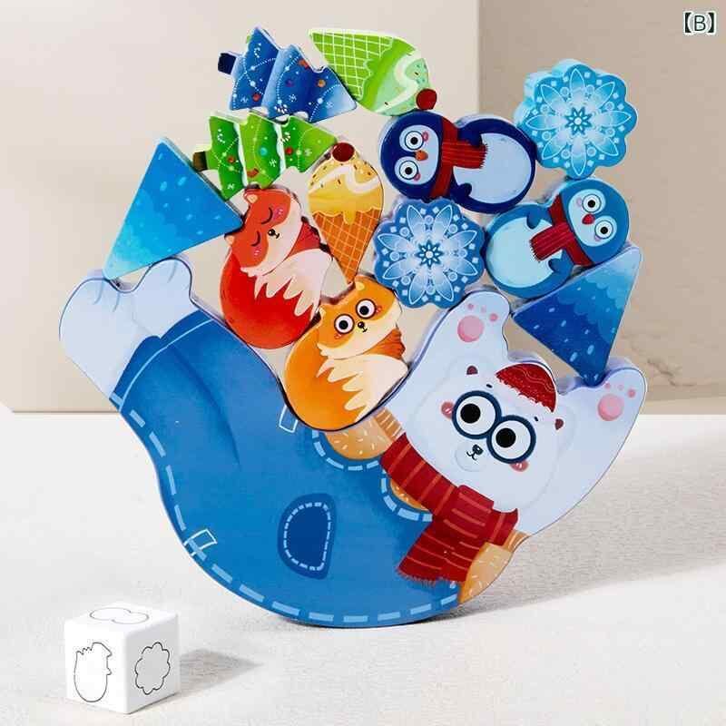 積み木 ブロック キッズ 木製 動物 バランスゲーム 組み立て式 積み重ね 知育玩具 幼児教育 バランス感覚 集中力 思考力 アニマル カラフル 猫 シロクマ クジラ 月
