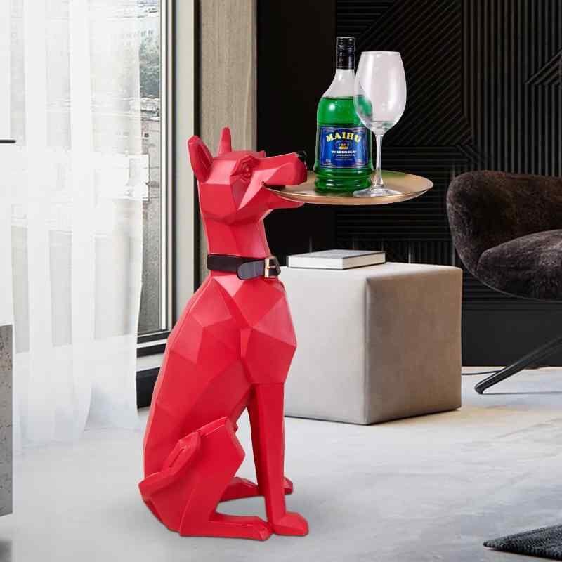 犬型 オブジェ 北欧 幾何学模様 ジオメトリック 収納トレイ 小物入れ サイドテーブル 玄関 リビング 床置き ディスプレイ 新築祝い 引越し祝い 樹脂製 インテリア飾り