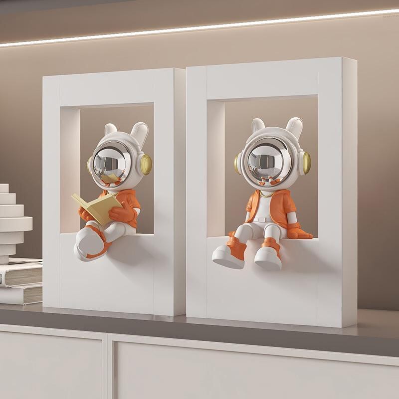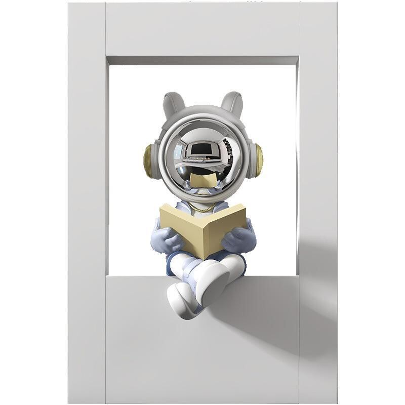 インテリアオブジェ 宇宙飛行士 読書 樹脂製 置物 デスク 卓上飾り テレビ台 ワイン棚 書斎 寝室 リビング 玄関 オフィス装飾 モダン カジュアル 高級感 ハンドペイント 座りポーズ | cybercart