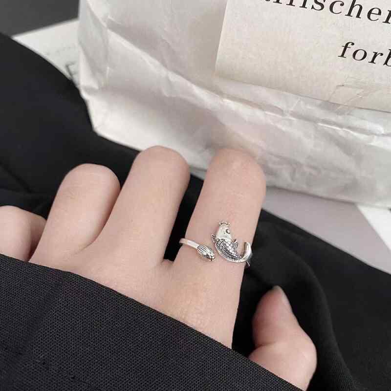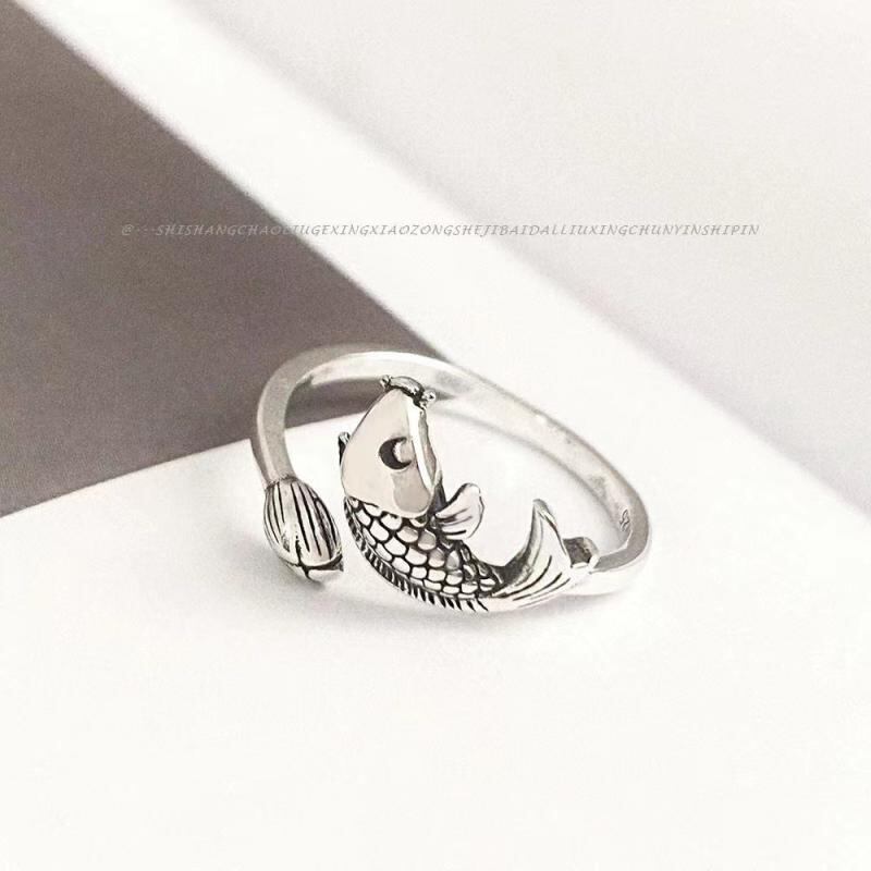 指輪 男女兼用 レトロ 民族風 錦鯉 銅銭 開運招福 ユニーク おしゃれ 個性的 デザイン フリーサイズ 合金製 アニマルモチーフ 文芸風 ラッキーアイテム