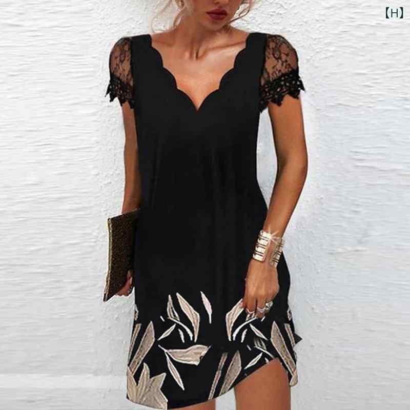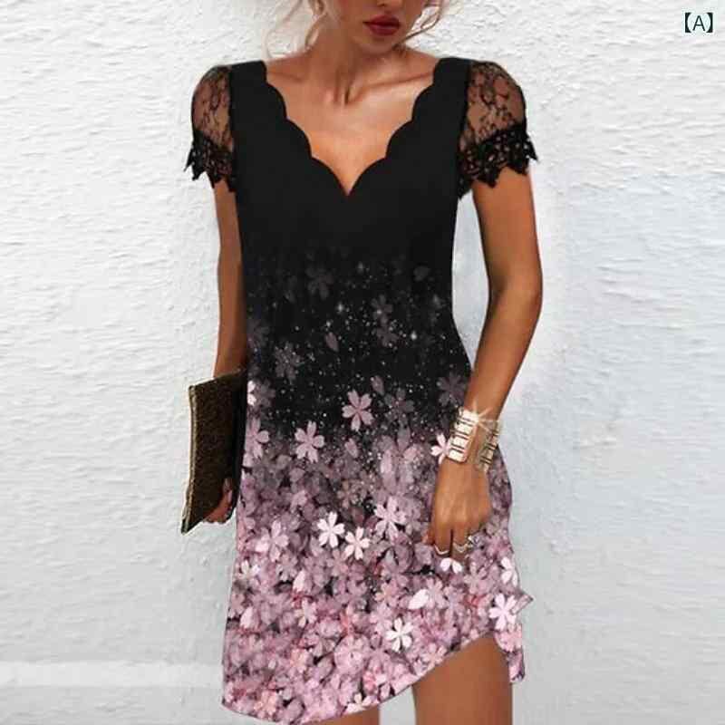 ワンピース レディース フレンチスタイル レース Vネック 半袖 花柄プリント Aライン ミディ丈 エレガント フェミニン 上品 お呼ばれ 再生繊維 リヨセル
