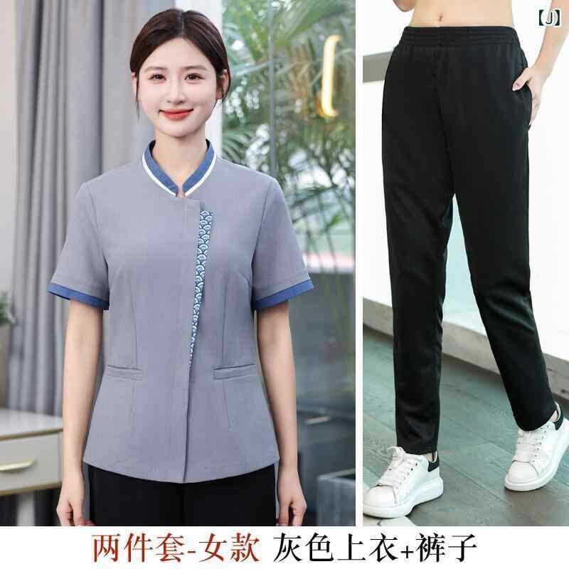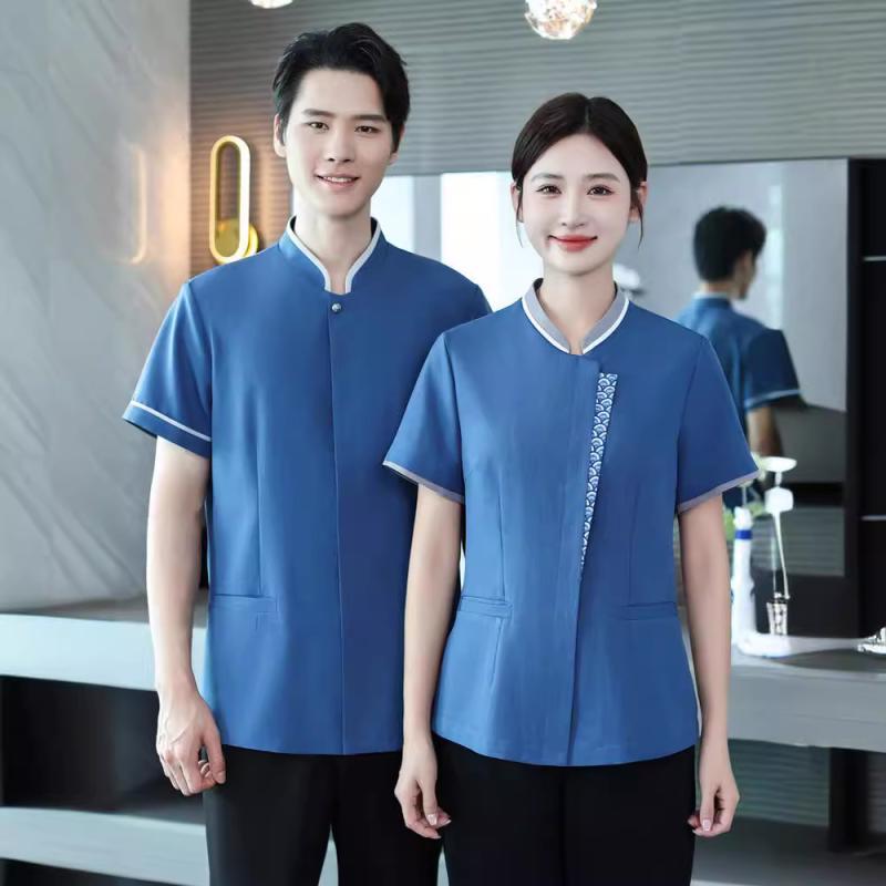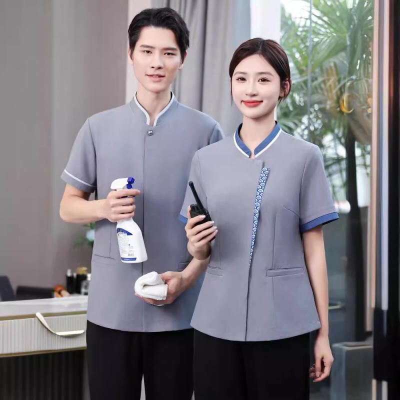 清掃服 男女兼用 ユニセックス 半袖 作業服 ホテル 旅館 客室清掃 家事代行 サービス業 制服 業務ユニフォーム 通気性 吸湿速乾 防油 防汚 軽量 綿混紡 ポリエステル素材