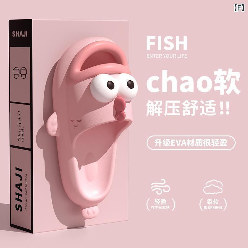 拖鞋 女 夏季 厚底 室内 沙滩 凉鞋 EVA 舒适踩屎感 外穿 情侣款 可爱 小恶魔图案 家居鞋 室内外兼用 柔软防滑