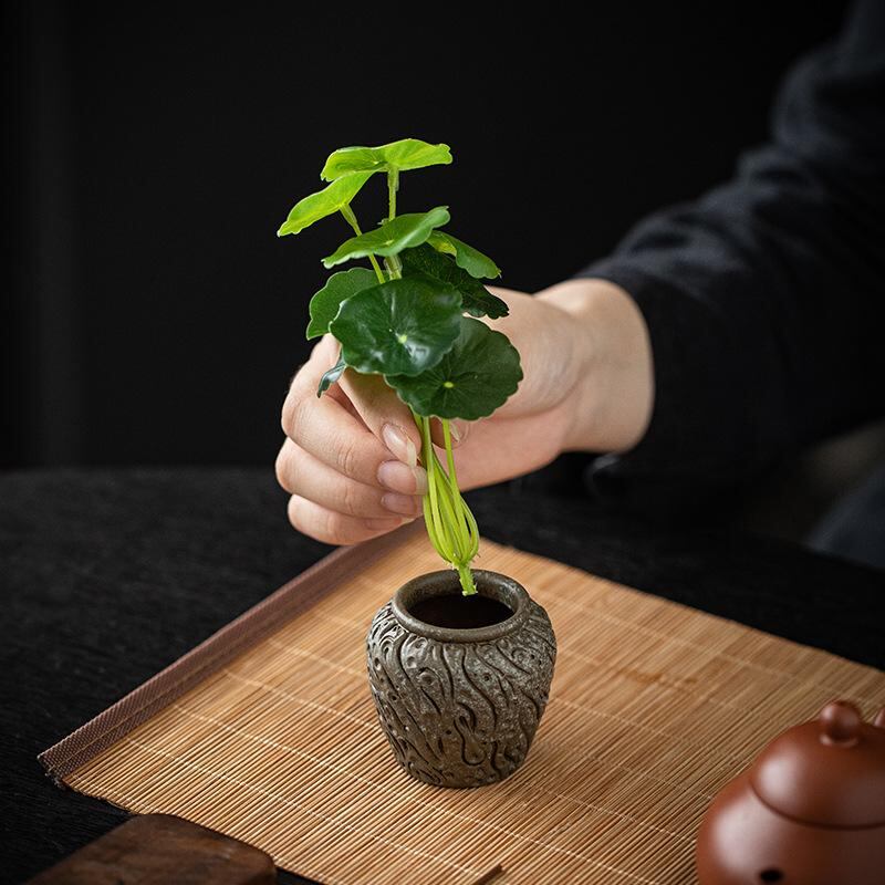 花瓶 ミニ 中国風 レトロ 陶器製 小型 インテリア リビング オブジェ 飾り 水耕栽培用 ハイドロカルチャー 観葉植物 卓上 置物 おしゃれ アンティーク調 ヴィンテージ アジアンテイスト 素朴 ナチュラル 黒 茶色