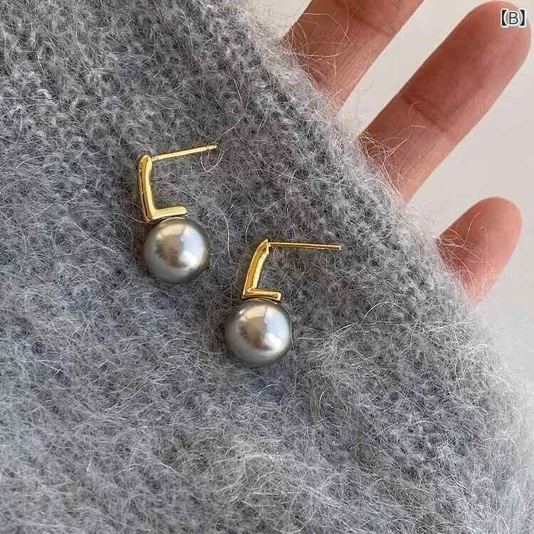 ピアス レディース 高級感 グレー パール メタル 幾何学デザイン ラウンド フレンチレトロ ヴィンテージ 韓国 シンプル 個性的 上品 エレガント イヤリング 耳飾り 普段使い オフィス カジュアル フォーマル