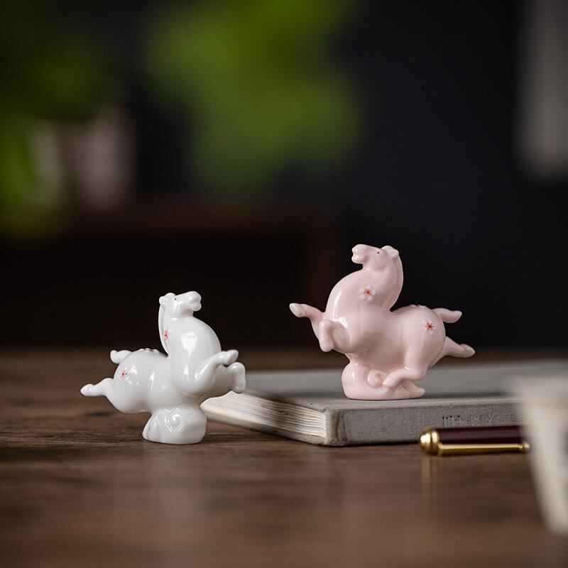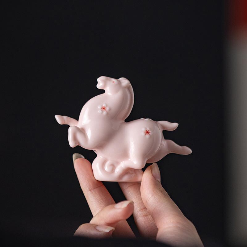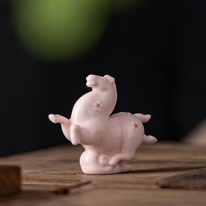 置物 女の子 かわいい 陶器製 瑞雲馬 干支 ミニサイズ 卓上飾り リビング オフィス デスク 部屋 おしゃれ インテリア雑貨 ピンク色 ギフト プレゼント オブジェ