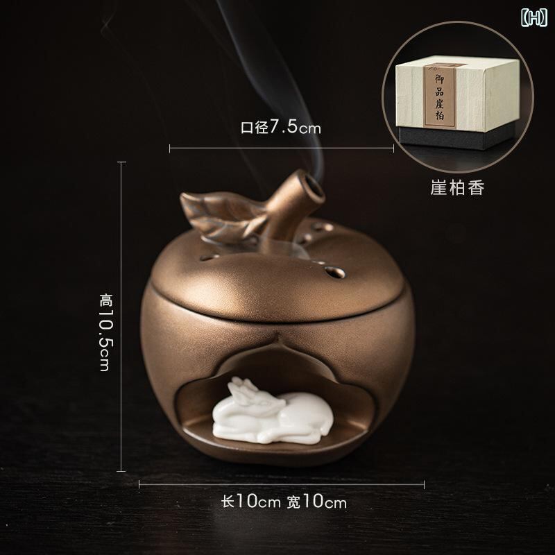 香炉 陶器製 鹿デザイン 縁起物 家庭用 室内用 卓上 渦巻き線香立て 沈香 白檀 禅風 茶室 和室 インテリア 置物 オブジェ 癒し リラックス 瞑想