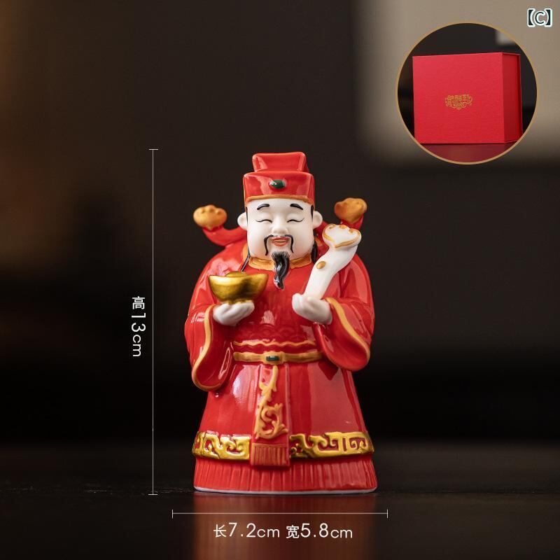 置物 五路財神様 陶器製 金運招来 開運 縁起物 中華風 家庭用 リビング オフィス 卓上飾り インテリア 新築祝い 開店祝い 開業祝い ギフト 贈り物