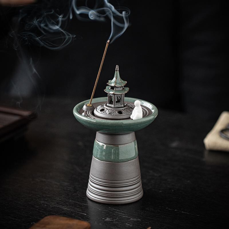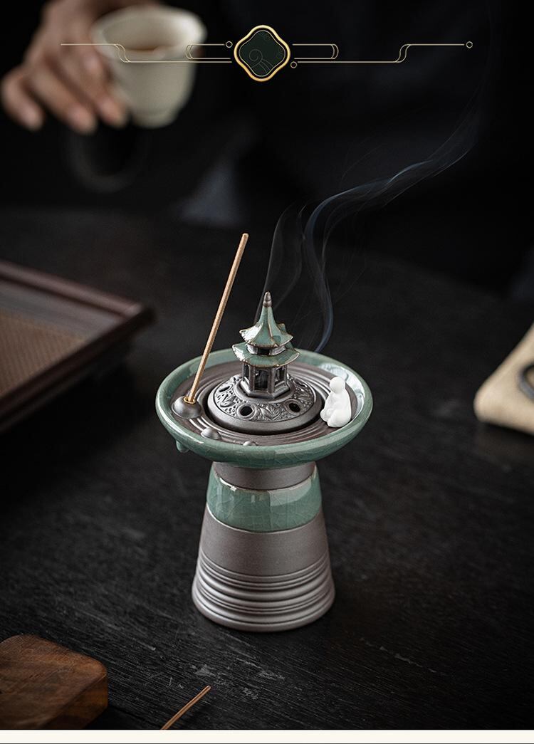 香炉 ミニ コンパクト 陶器製 セラミック 中国風 和モダン 禅風 湖心亭デザイン 室内用 リビング 書斎 玄関 茶道 癒し リラックス 瞑想 インテリア 置物 お香立て 盤香 線香対応 おしゃれ