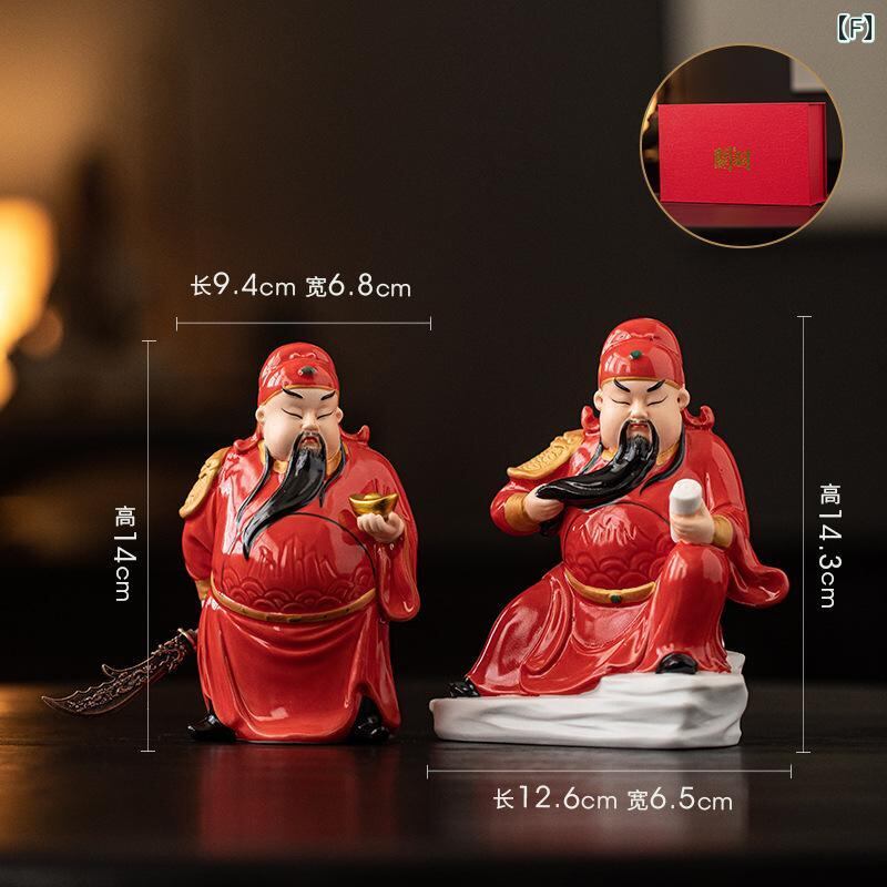 置物 関羽像 武財神 陶器製 中式 風水 開運招福 商売繁盛 財運 縁起物 リビング 玄関 オフィス 室内装飾 開店祝い 新築祝い 引っ越し祝い ビジネスギフト 贈り物 プレゼント