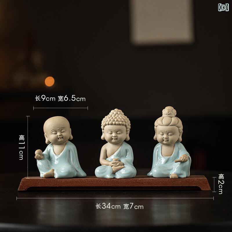 仏像 三尊像 釈迦如来 観音菩薩 地蔵菩薩 汝窯 貫入 陶器製 新和風 モダン 禅テイスト 癒し インテリア 置物 高級感 精巧 卓上 リビング 和室 仏間 デコレーション