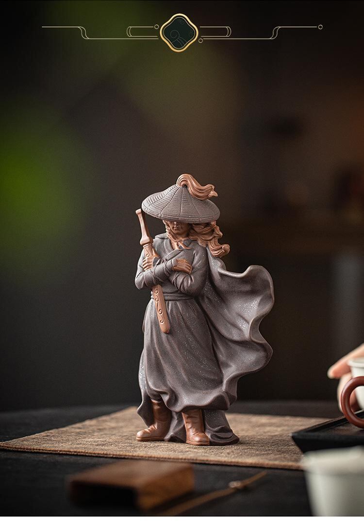 置物 陶器製 武侠 剣士 人物像 禅風 古典 東洋風 レトロ アジアンテイスト インテリア 室内装飾 リビング 玄関 飾り棚 ディスプレイ 庭園 箱庭 アクアリウム 風景 景観 オブジェ