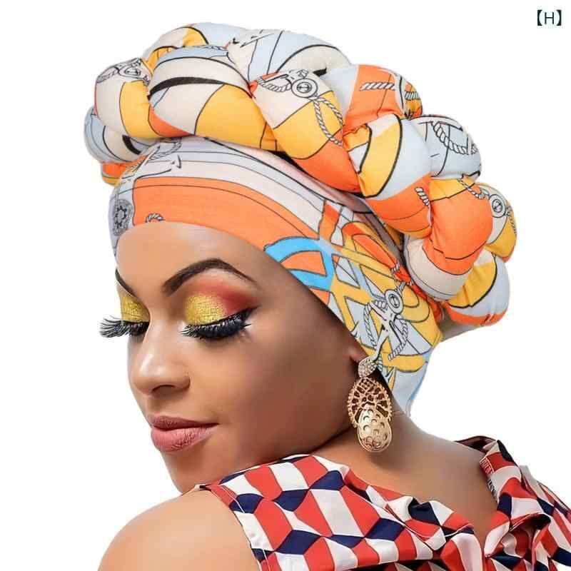 ターバン帽 大人用 欧米風 アフリカンスタイル 個性的 大胆デザイン プリント柄 太編み ムスリム エスニック ボヘミアン 夏用 日よけ 通気性 クッション性 ポリエステル ヘッドラップ