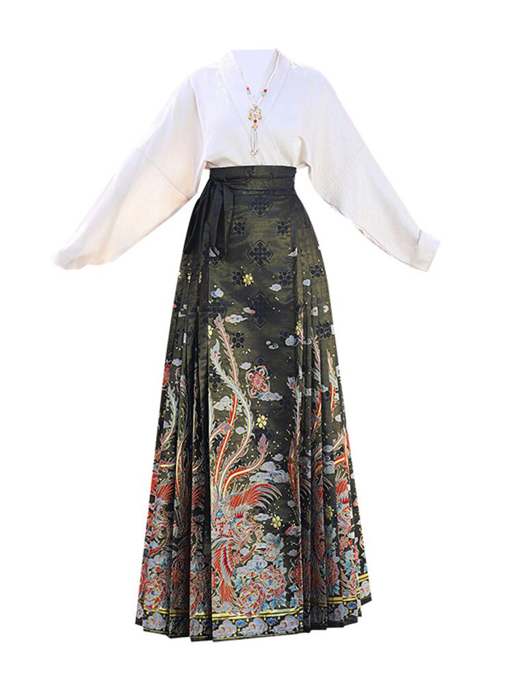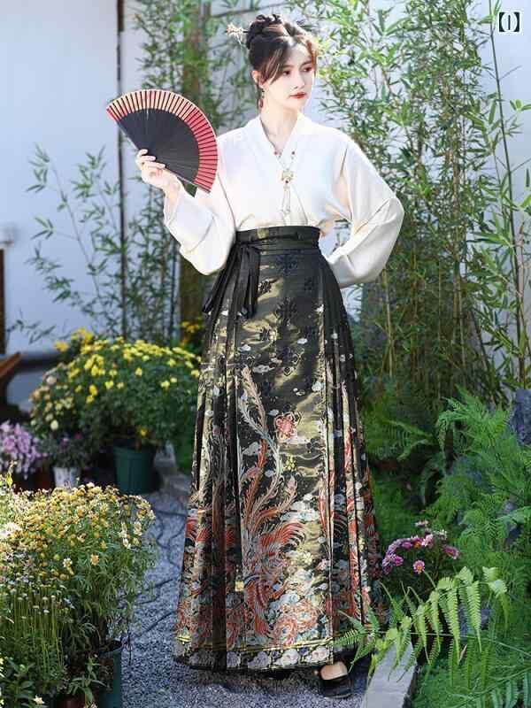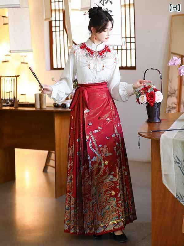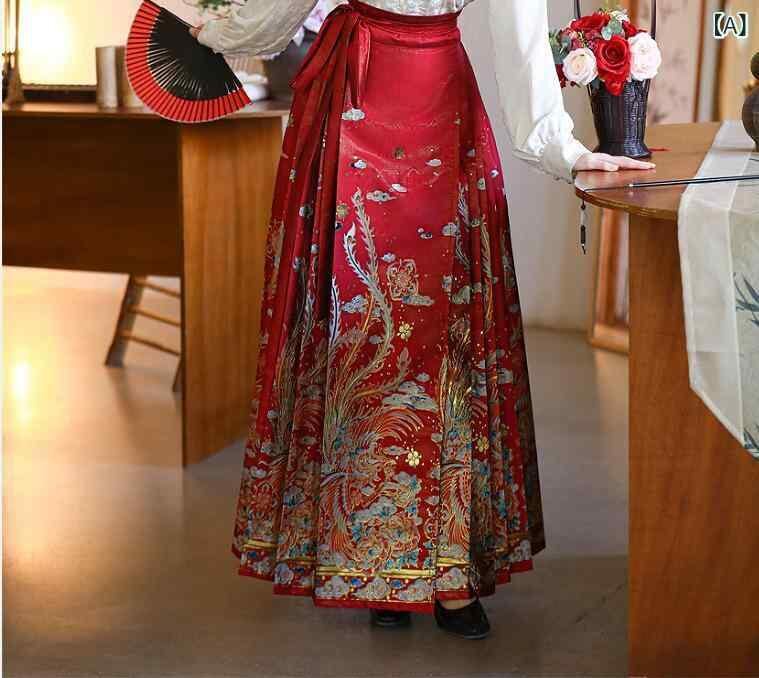スカート レディース 馬面スカート 新チャイナスタイル 国風 鳳凰柄 フェニックス 金糸織り ジャガード 赤 レッド 結婚式 披露宴 二次会 パーティー お呼ばれ フォーマル 高級感 ロング丈 春 秋