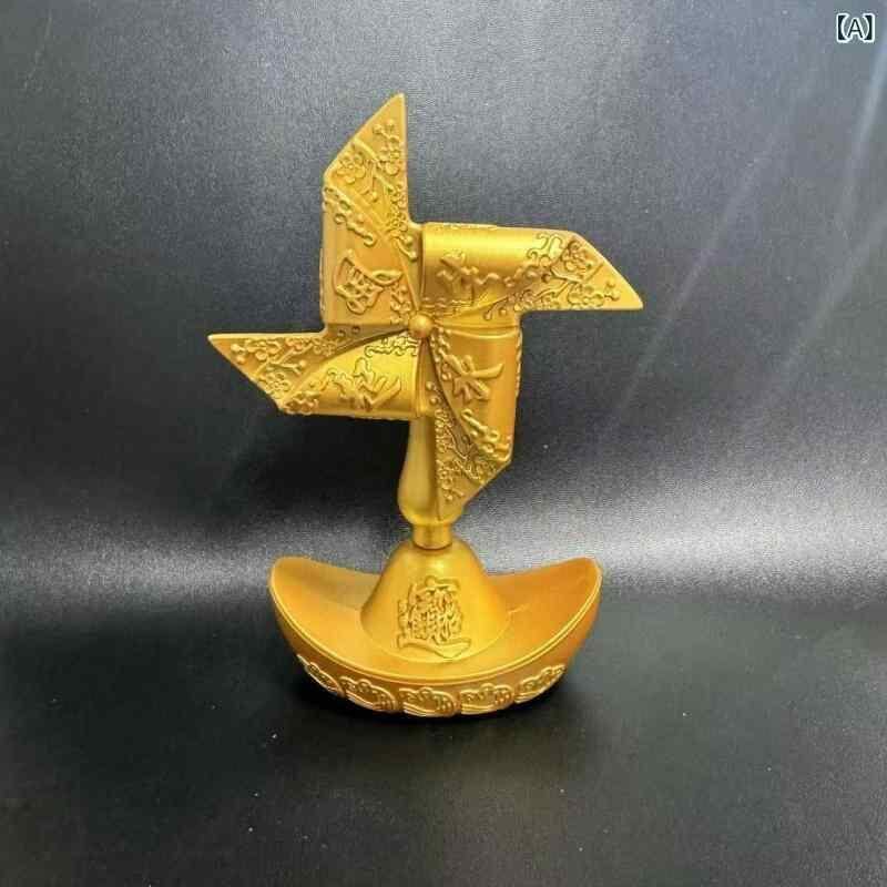 置物 金運 開運 招財 元宝 風車 回転式 銅製 卓上 デスク 車載 インテリア 風水 運気アップ 幸運 オブジェ ラッキーアイテム リビング 玄関 オフィス 商売繁盛 高級感 | cybercart