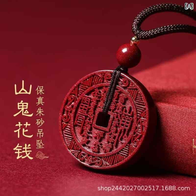 ペンダント 高品質 辰砂 紫金砂 帝王砂 山鬼花銭 九宮八卦 平安扣 道教 縁起物 開運 魔除け お守り 吉祥文様 民族風 彫刻