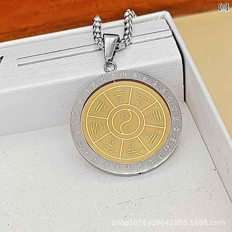 ペンダント メンズ レディース ステンレス レトロ ヴィンテージ 中古風 回転 道教 太極 八卦 陰陽魚 お守り 開運 風水 チャーム ネックレス トップ
