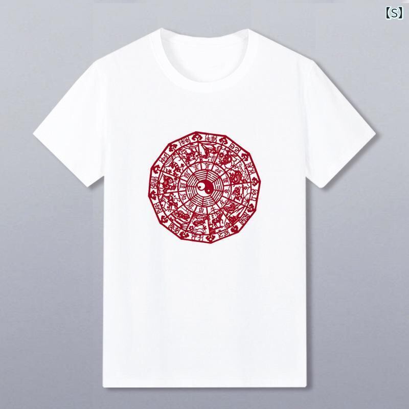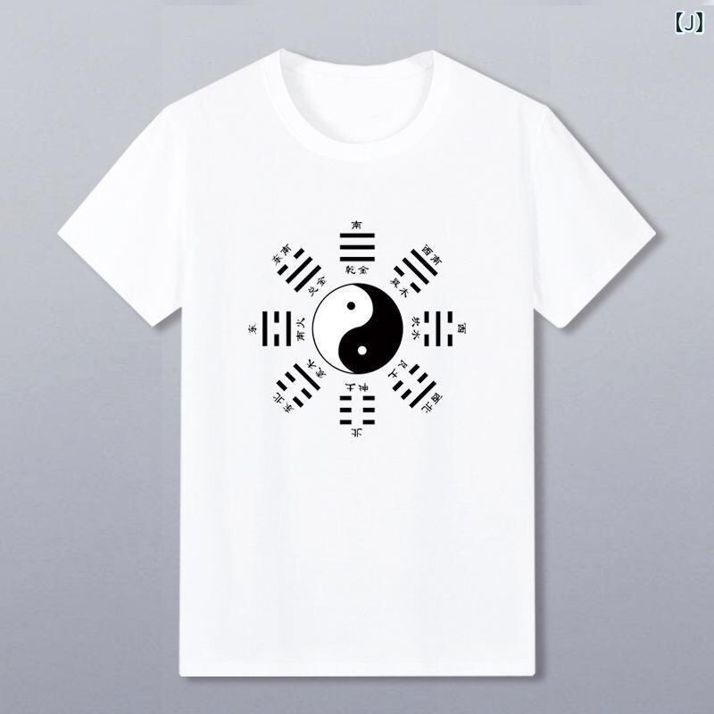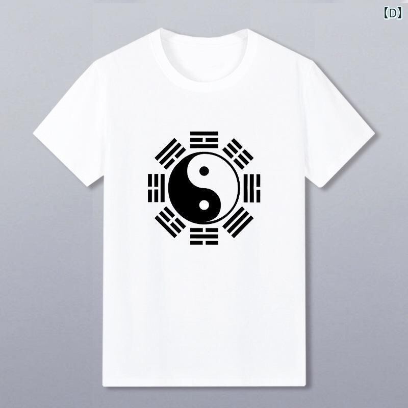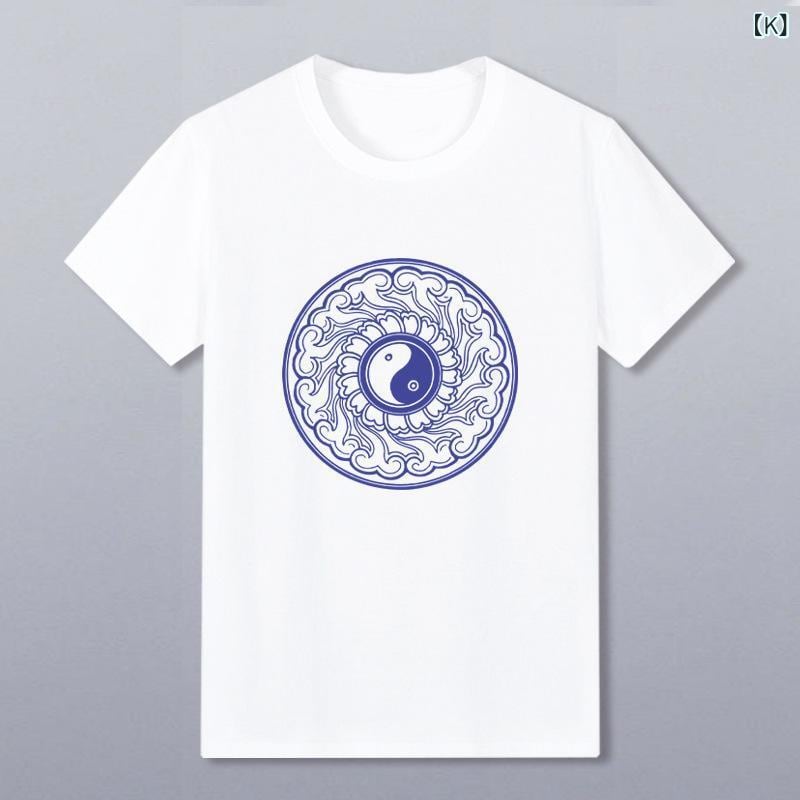 Tシャツ メンズ 男性用 中国風 カンフー 八卦 太極図 陰陽柄 プリント 半袖 クルーネック ゆったり ルーズフィット 大きいサイズ ビッグシルエット スポーツウェア トレーニングウェア 普段使い デイリーユース 麻素材 オールシーズン