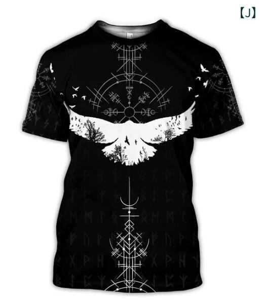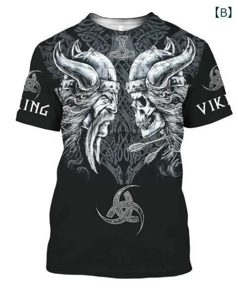 Tシャツ メンズ レディース ヴァイキングシンボル 3Dプリント 半袖 クルーネック ポリエステル素材 通気性 速乾 スポーツ カジュアル ストリート レギュラーフィット トップス