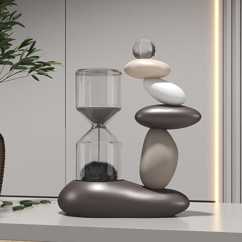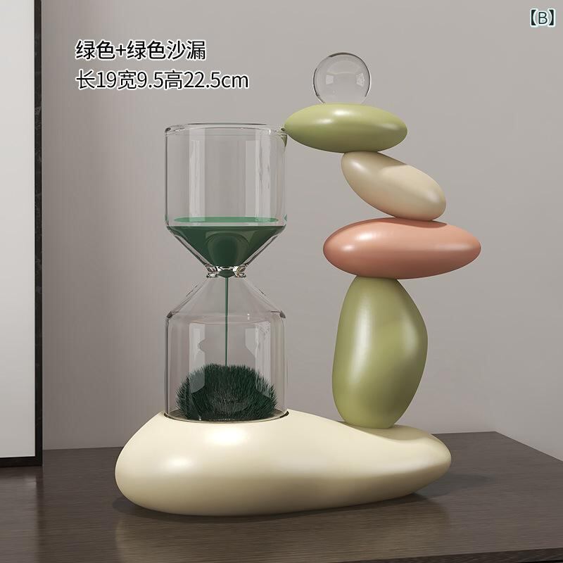 置物 開運 運気上昇 磁力砂時計 ストーン オブジェ テレビ台 酒棚 玄関 オフィス 卓上 デスク インテリア 装飾品 飾り 贈答品 樹脂製 モダン シンプル 手書き