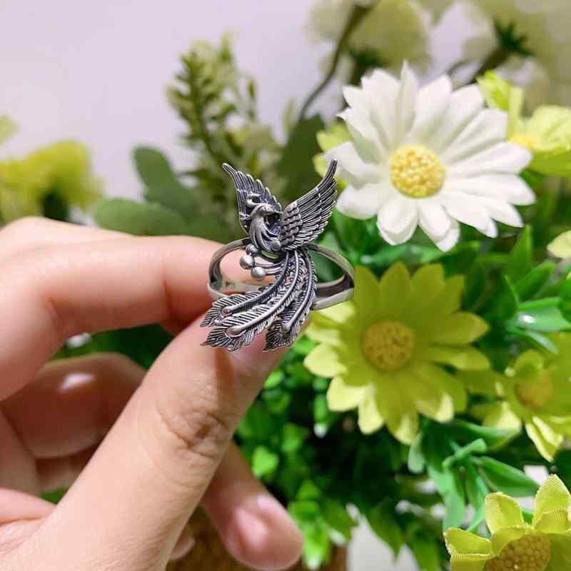 指輪 レディース 孔雀 鳳凰 モチーフ アンティーク調 ヴィンテージ加工 フリーサイズ オープンリング レトロシルバー 個性派 おしゃれ 手作り 亜鉛合金 アクセサリー