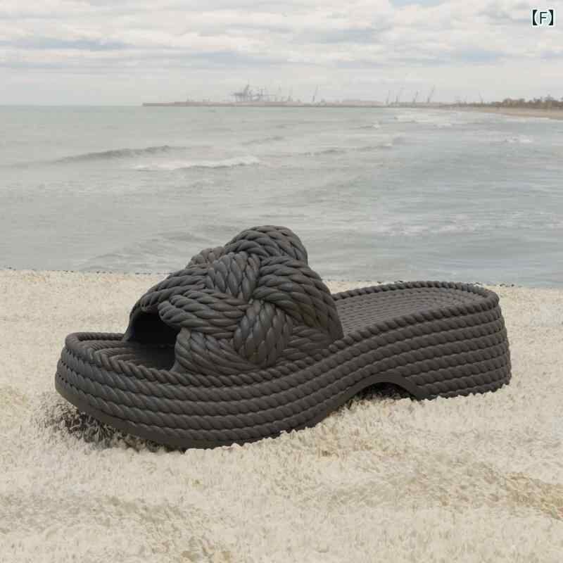 サンダル レディース 女性用 EVA素材 ウェッジソール 厚底ヒール ワンストラップ スライドサンダル 編み込みデザイン 丸いつま先 ビーチ リゾート 旅行 外履き 普段使い カジュアルスタイル