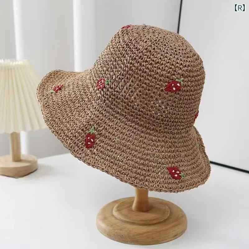 麦わら帽子 レディース かわいい リボン 刺繍 UVカット つば広 日よけ帽子 サマーハット 通気性 くり抜き レース編み ペーパー素材 ビーチ リゾート 旅行