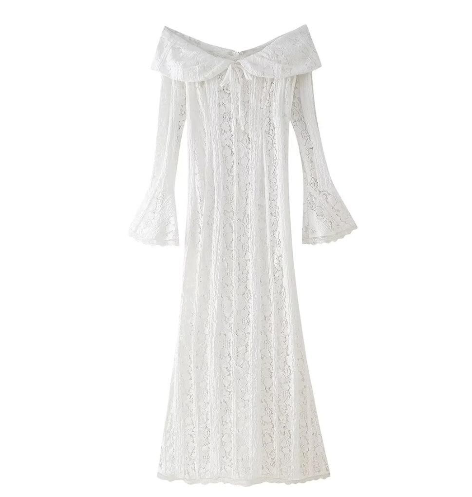 ワンピース レディース オフショルダー ベアトップ レース ノースリーブ タイト ミディ丈 ハイウエスト ポリエステル 無地 エレガント セクシー Iラインシルエット パーティー お呼ばれ
