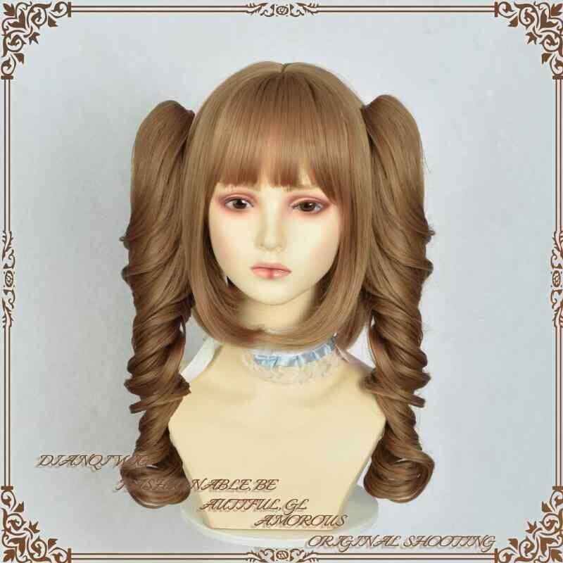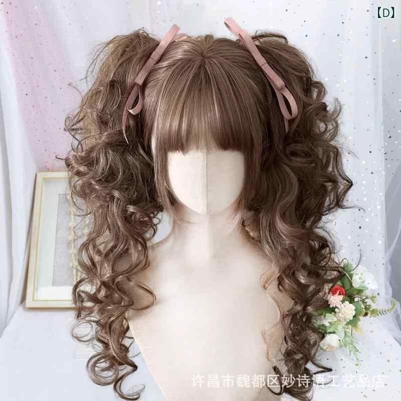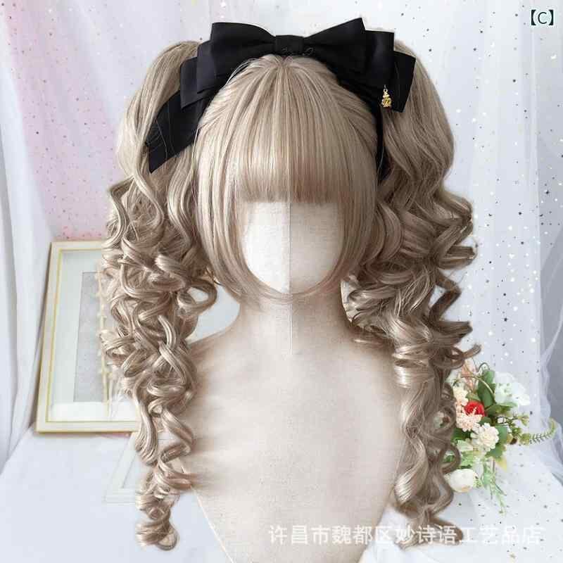 COSウィッグ レディース ロリータ JKスタイル ツインテール フルウィッグ かつら 中長髪 ミディアムロング エレガント レトロ 上品 アッシュゴールド 亜麻色 コスプレ アニメ イベント 仮装