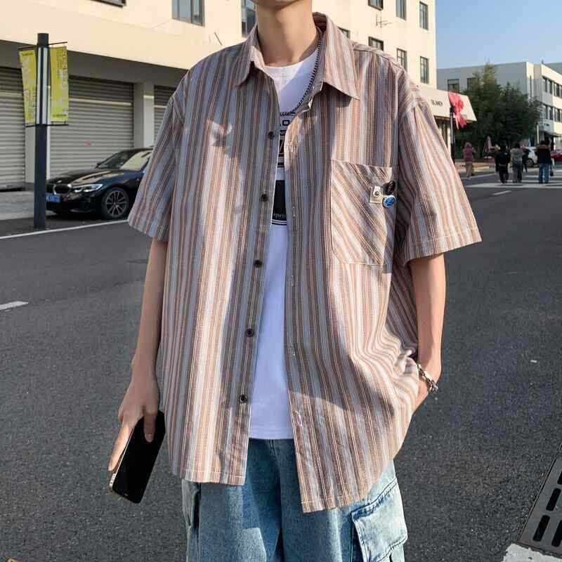 シャツ メンズ 半袖 ビッグシルエット オーバーサイズ ゆったり チェック柄 ストライプ柄 カジュアル 夏用 トップス 綿100% コットン ノーアイロン シワになりにくい レギュラーカラー おしゃれ 普段使い 男性用