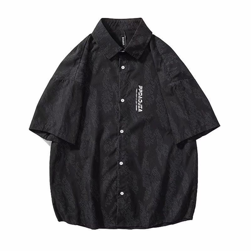 シャツ メンズ 半袖 接触冷感 薄手 ゆったり ルーズフィット 襟付き トップス 羽織り 日系 トレンド ストリート カジュアル ポリエステル 普段使い ホワイト ブラック