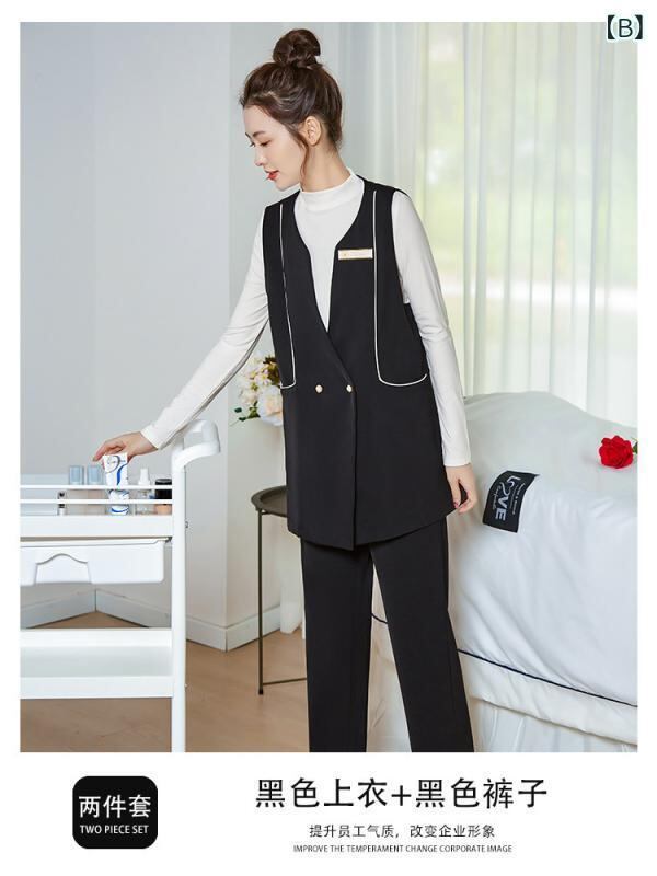 ユニフォーム レディース ベスト ジレ セットアップ スーツ エステ 美容クリニック 受付 サロン スタッフ 事務服 制服 吸湿速乾 ストレッチ素材 ロングパンツ 通年