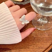 指輪 レディース アイスブルー バタフライ オープンリング 人工クリスタル製 電気メッキ 幾何学デザイン フリーサイズ 個性的 高級感 フェミニン 清楚感 上品