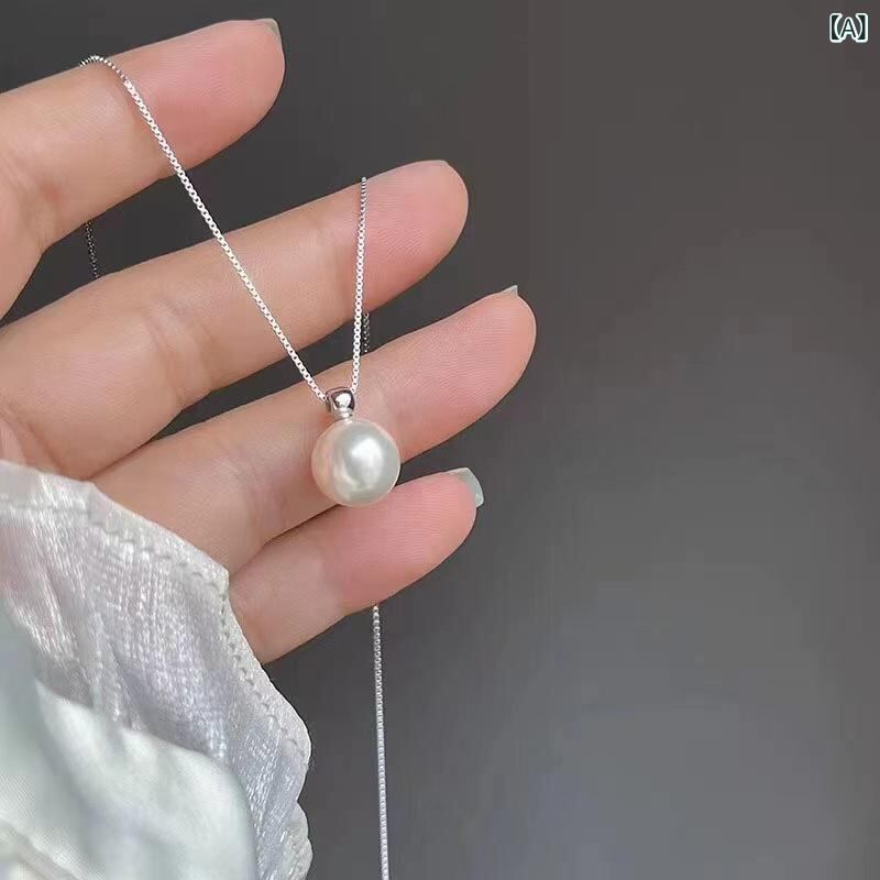 ネックレス レディース 一粒パール シンプル 上質 高級感 ショートネックレス チョーカー 夏 フェイクパール S925シルバー ボックスチェーン トレンド 通勤 オフィス 普段使い ホワイト