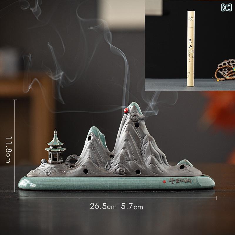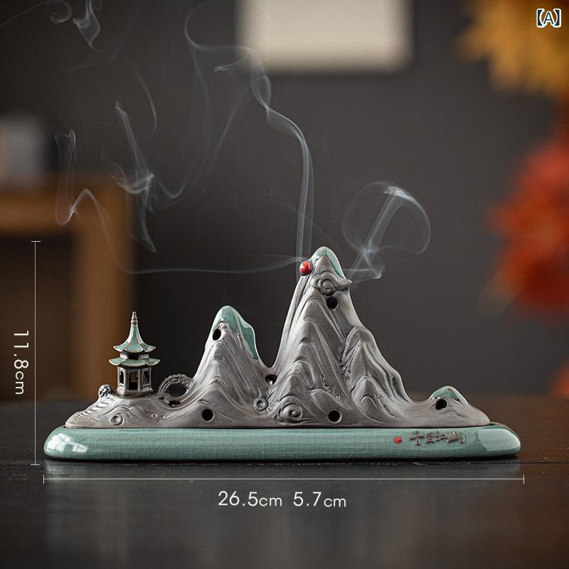 線香立て 横置き 山水画風 和モダン 禅風 陶器製 スティック線香用 室内用 卓上 おしゃれ リビング 書斎 玄関 茶室 お香 リラックス 癒し 香皿