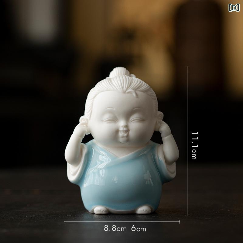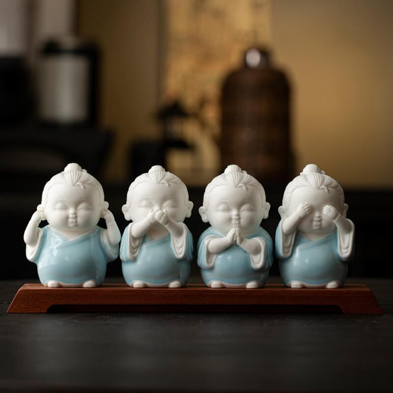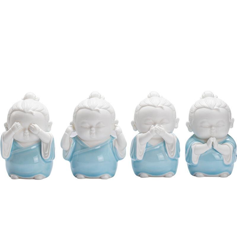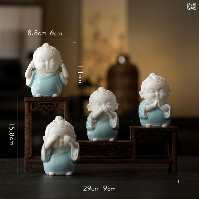 置物 禅 ミニ道士 見ざる聞かざる言わざる 四体セット 陶器製 かわいい 人物像 茶室 飾り棚 茶卓 茶台 インテリア装飾 中国風 和モダン 癒し 開運 縁起物