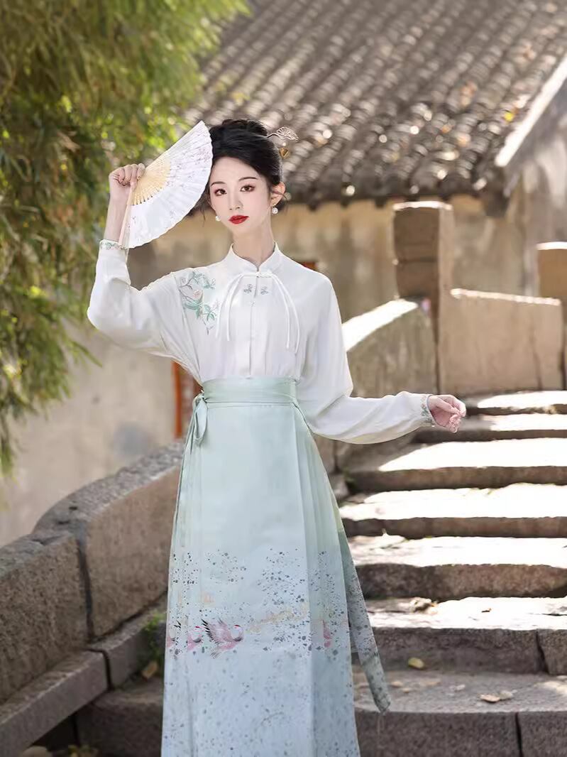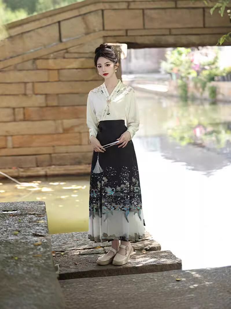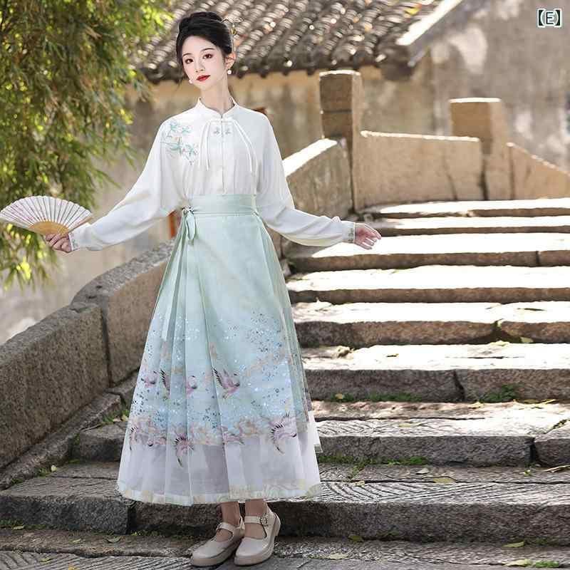 漢服 明朝スタイル 通勤 普段使い 豪華刺繍 織り金 上下セット 新中国風 馬面スカート ロングスカート 高級感 エレガント ポリエステル